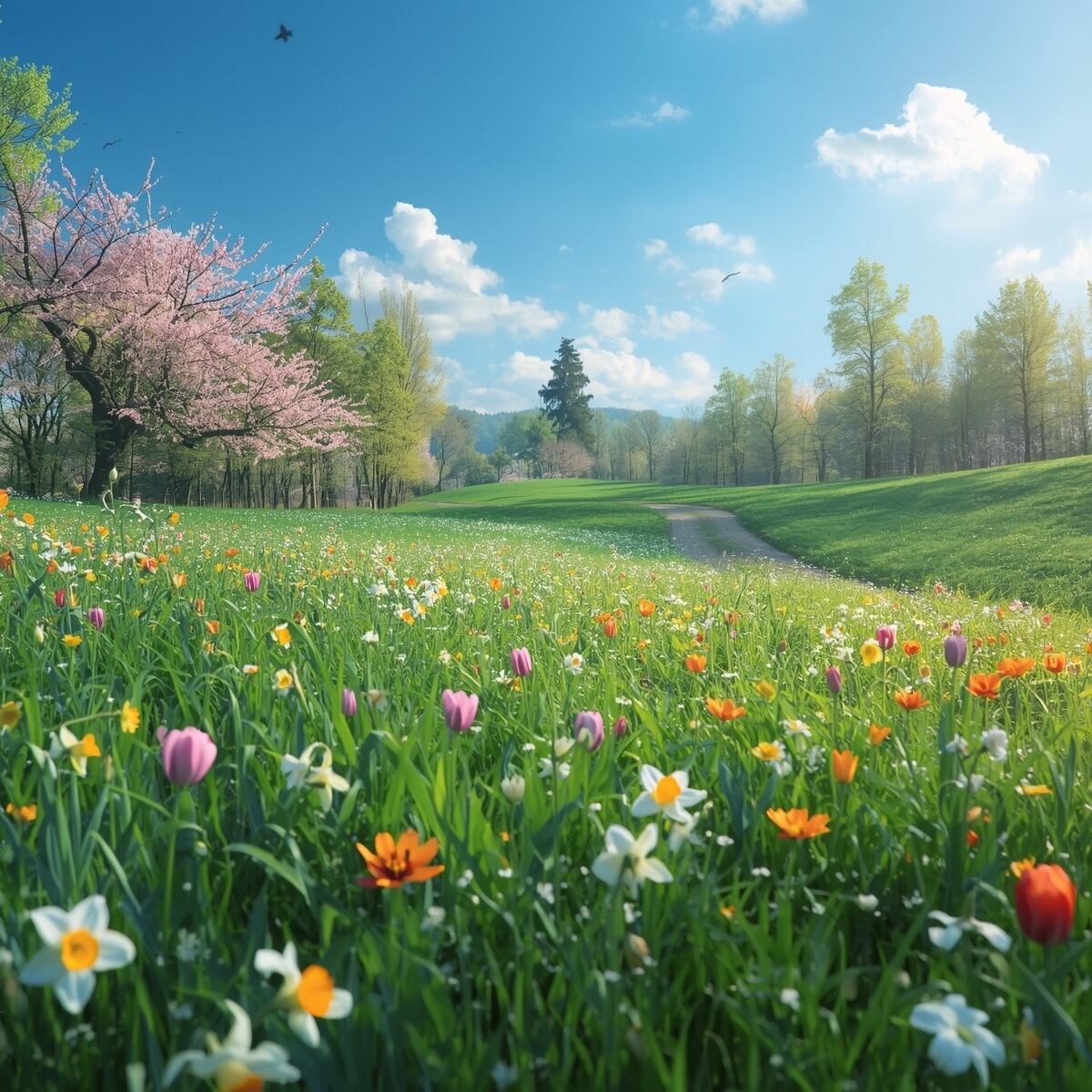 春の公園をテーマにした、心が癒されるアート作品です。この美しいデザインは、春の温かい日差しの中で広がる公園の景色を思い起こさせ、見る人に穏やかで心地よい気持ちをもたらします。