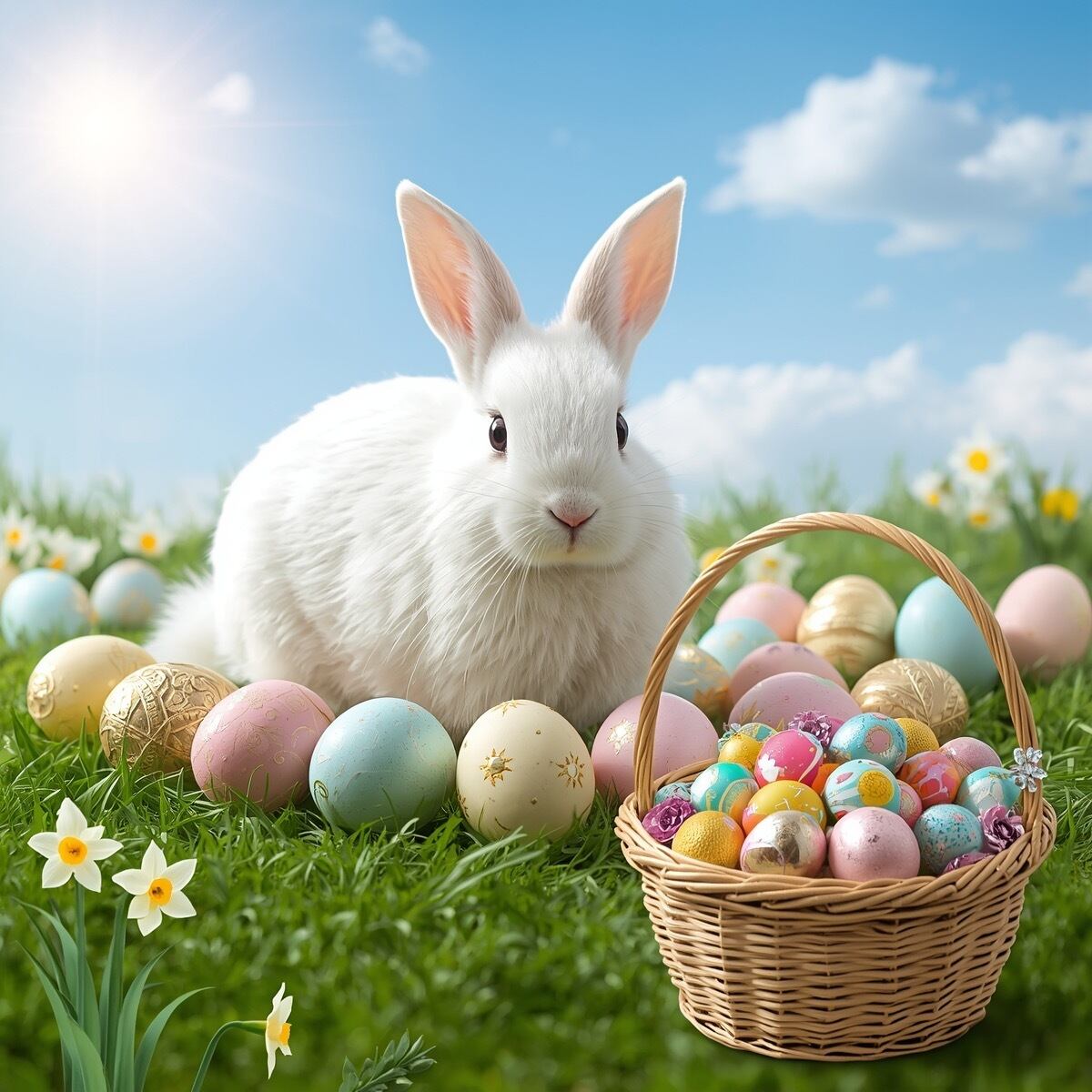 心を和ませる「イースター(うさぎ)」のアート作品です。この可愛らしいデザインは、愛らしいウサギたちと色とりどりのイースターエッグが織りなす、心躍る風景を思い起こさせ、見る人に喜びとワクワク感をもたらします。